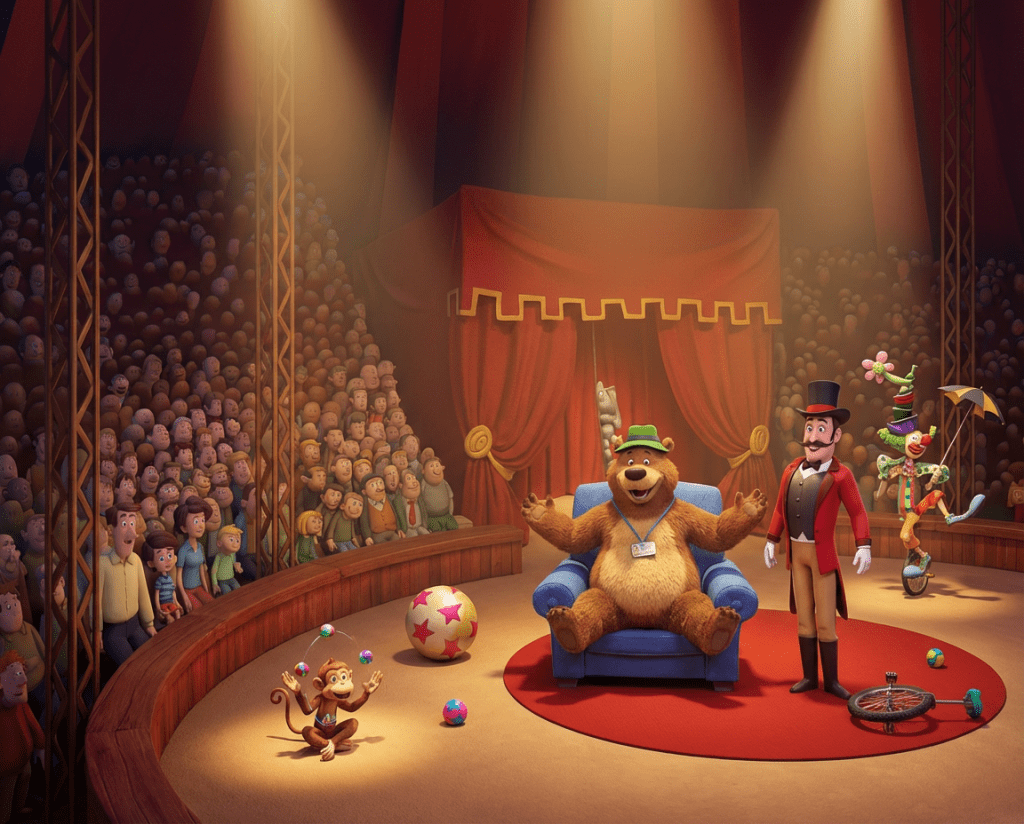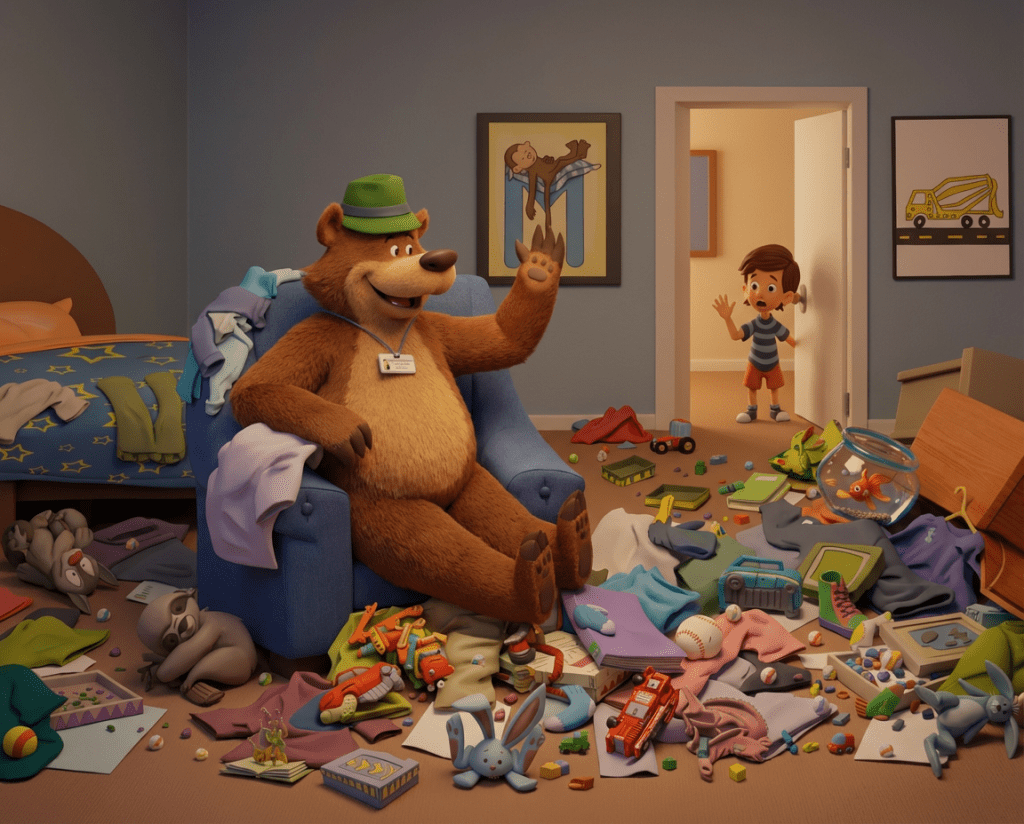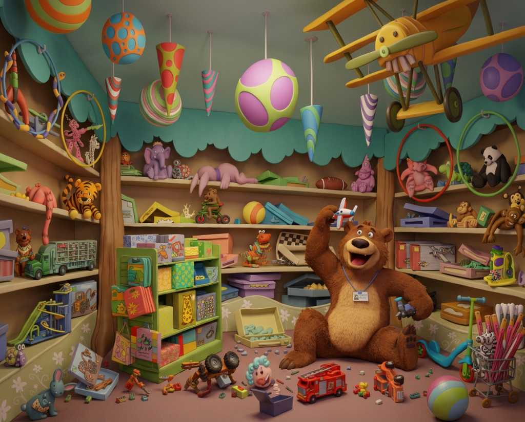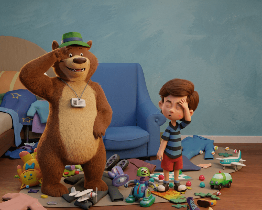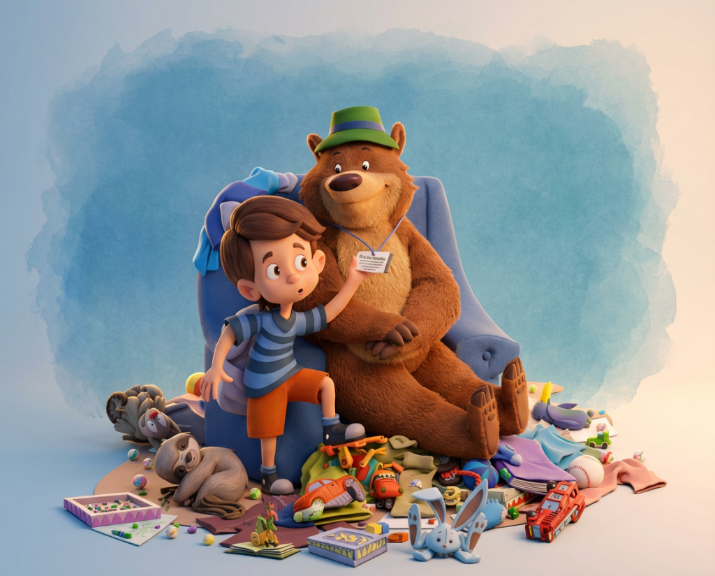 If The Bear in the Chair were brought to life as a 3D animated film, the artwork might look something like this. These examples show how some of the book’s illustrations could appear with added depth and dimension.