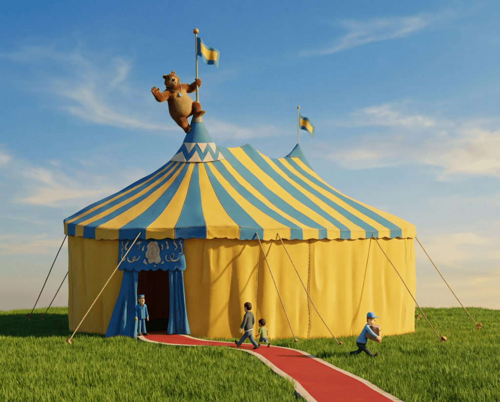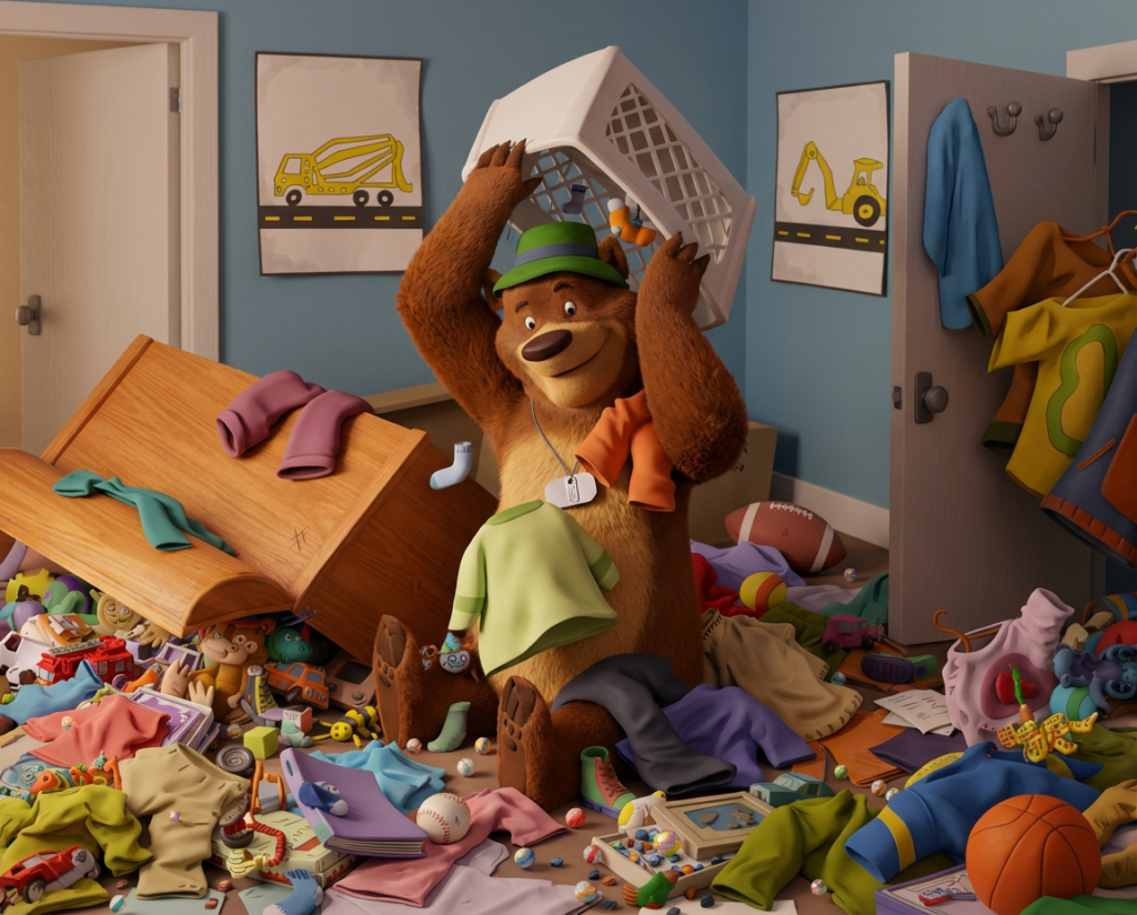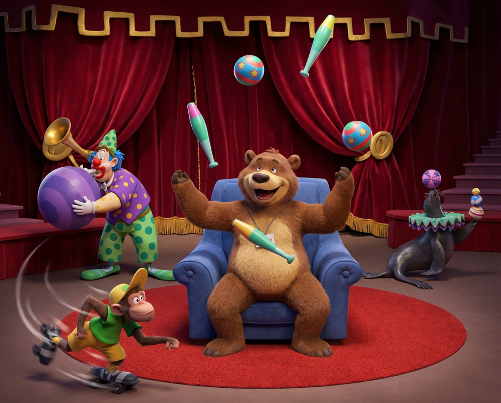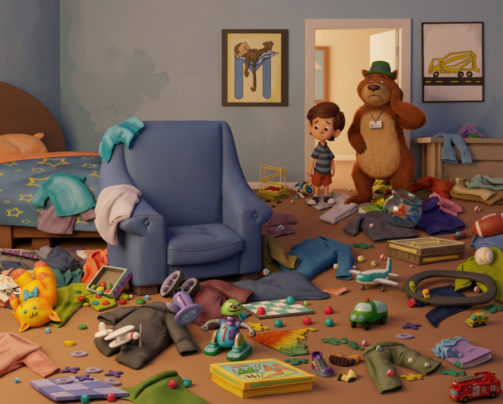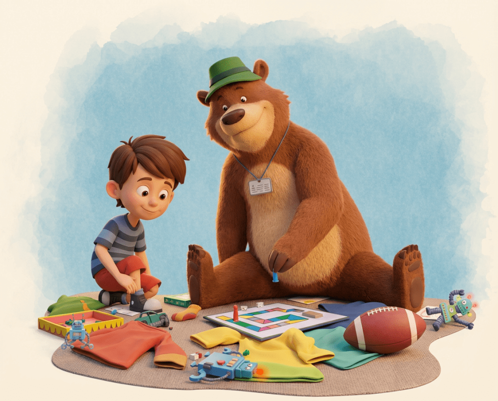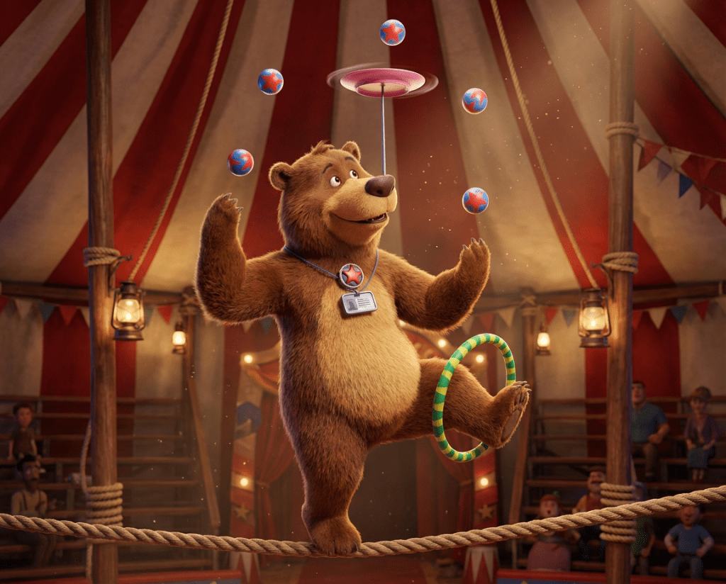 If The Bear in the Chair were brought to life as a 3D animated film, the artwork might look something like this. These examples show how some of the book’s illustrations could appear with added depth and dimension.
